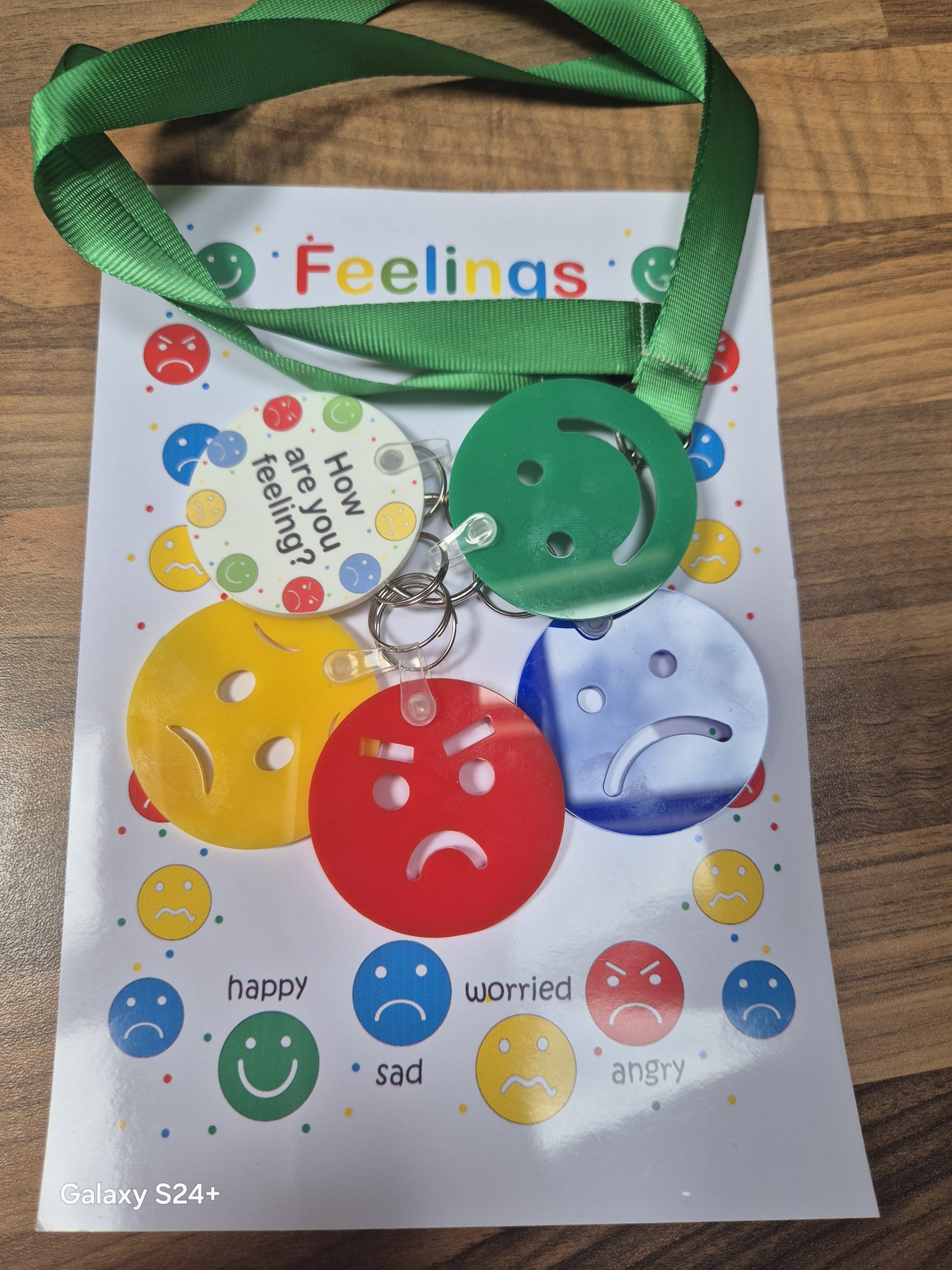 Emotion face keyrings- Feelings visual aids for home & school use.