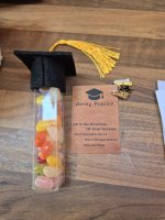 This set comes in a bag, with sweets, keyring and a personalised card.