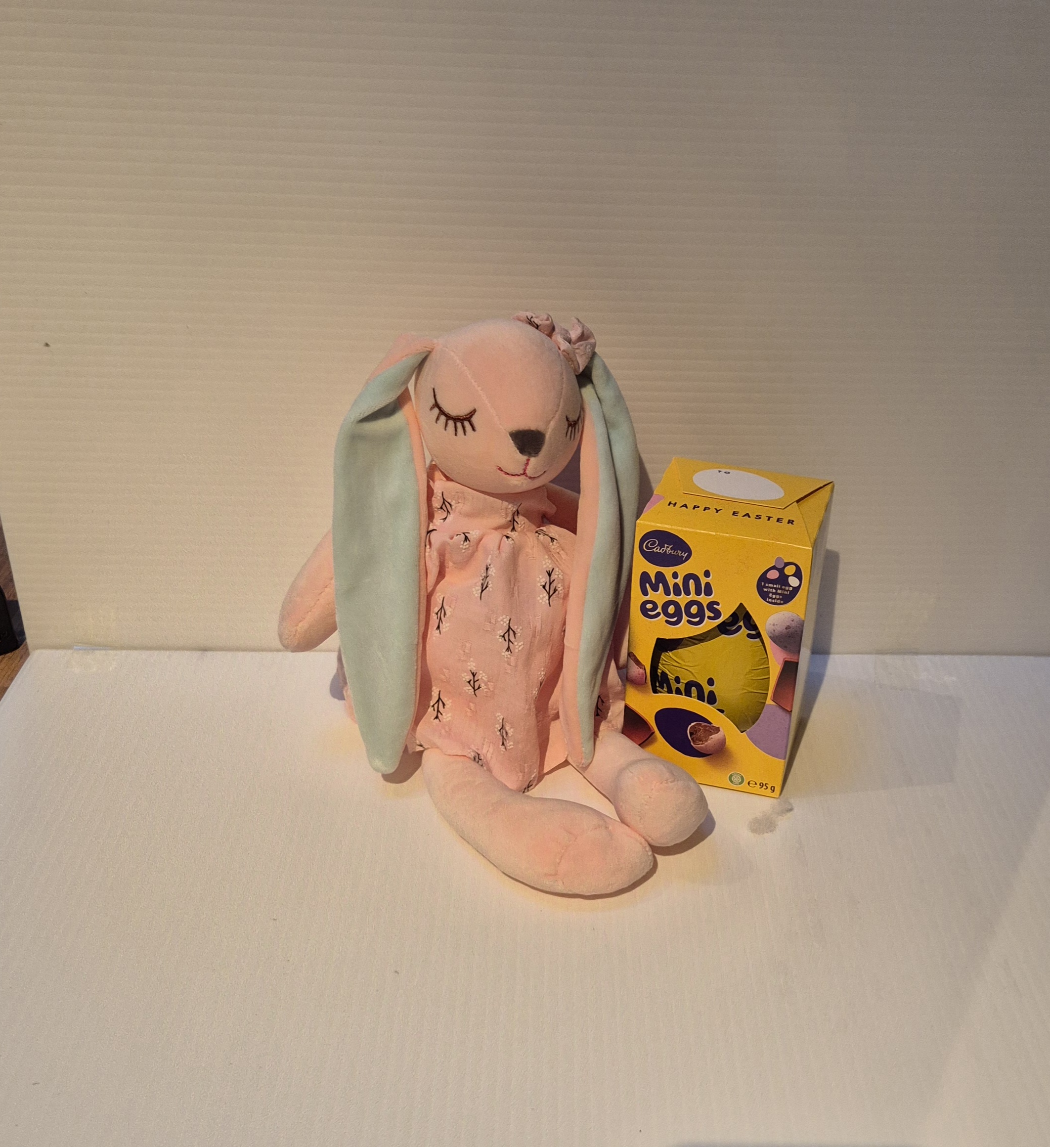 Pink bunny teddy, ears personalised with name & year comes with easter egg